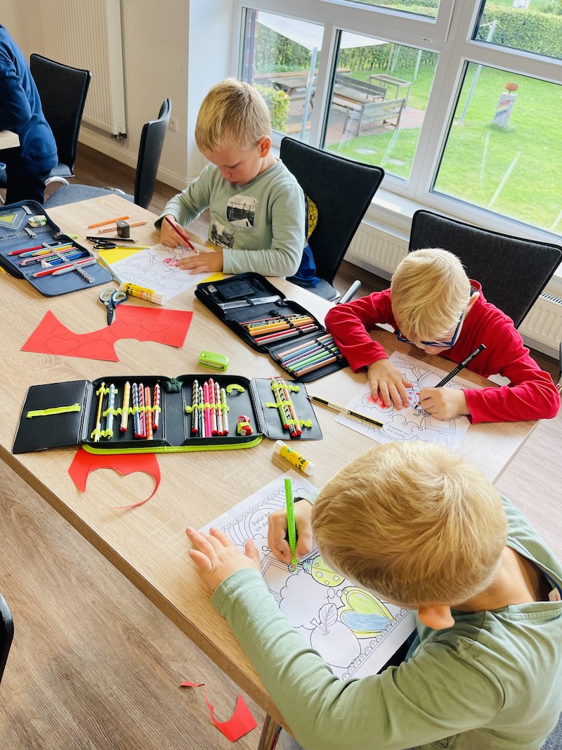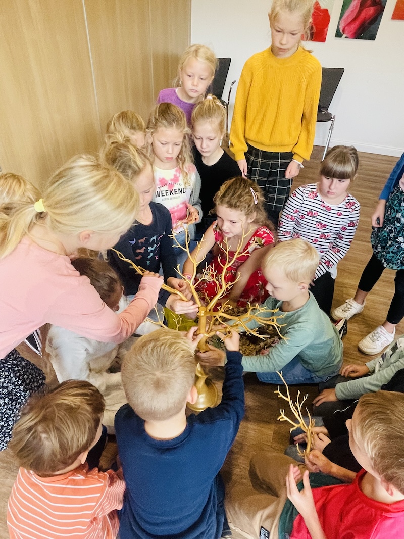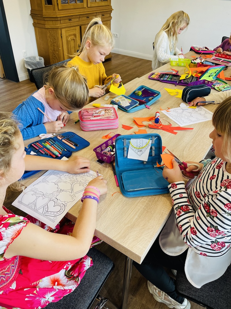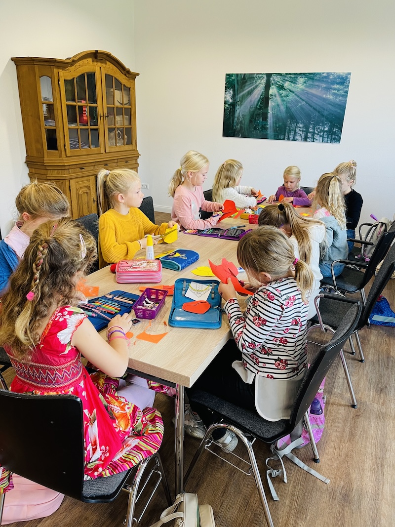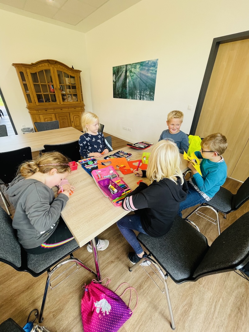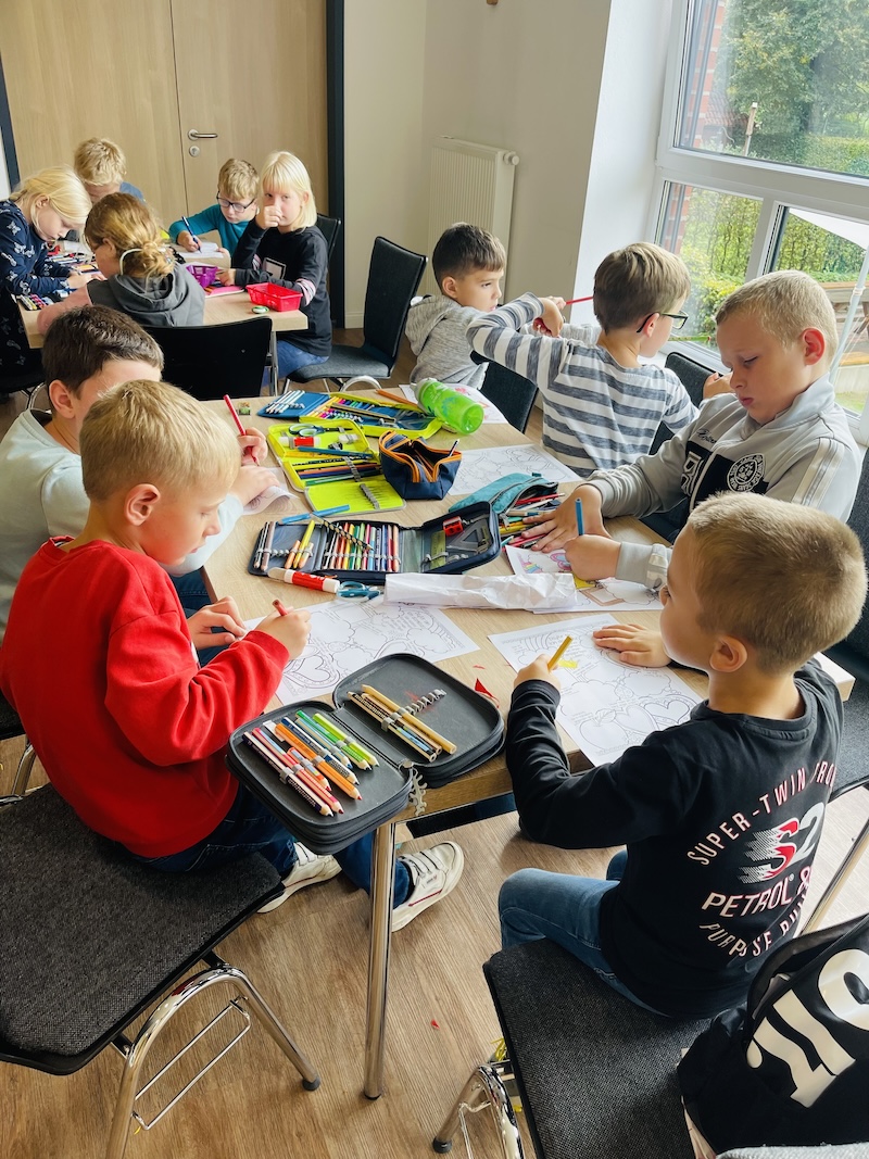 Bei Frau Wulfers durfte mit Kartoffeldruck experimentiert werden, Frau Moormann und Frau Vorholt haben mit den Kindern Tischgebetskärtchen gestaltet. Frau Albers und Frau Eck bastelten Holzmännchen und Fliegenpilzwindlichter, während Frau Kaiser und Frau Jonker sich als Waffelbäckerinnen um das leibliche Wohl kümmerten. Bei Frau Dröge konnten die Kinder beim Yoga zur Ruhe kommen und sich zum Beispiel wie eine Schildkröte fühlen. Frau Bergmann war ins Pfarrheim St. Vitus umgezogen und gestaltete mit den Kindern gemeinsam einen Dankbarkeitsbaum, der auch im Gottesdienst eine wichtige Rolle spielte. Die Klasse 4 unter der Leitung von Frau Simon kümmerte sich währenddessen um die Organisation des gesunden Frühstücks am kommenden Freitag und ging gemeinsam dafür zum Einkauf (hier einen großen Dank an Frau Sieverding und den Rewemarkt Löningen für die tolle Unterstützung!)