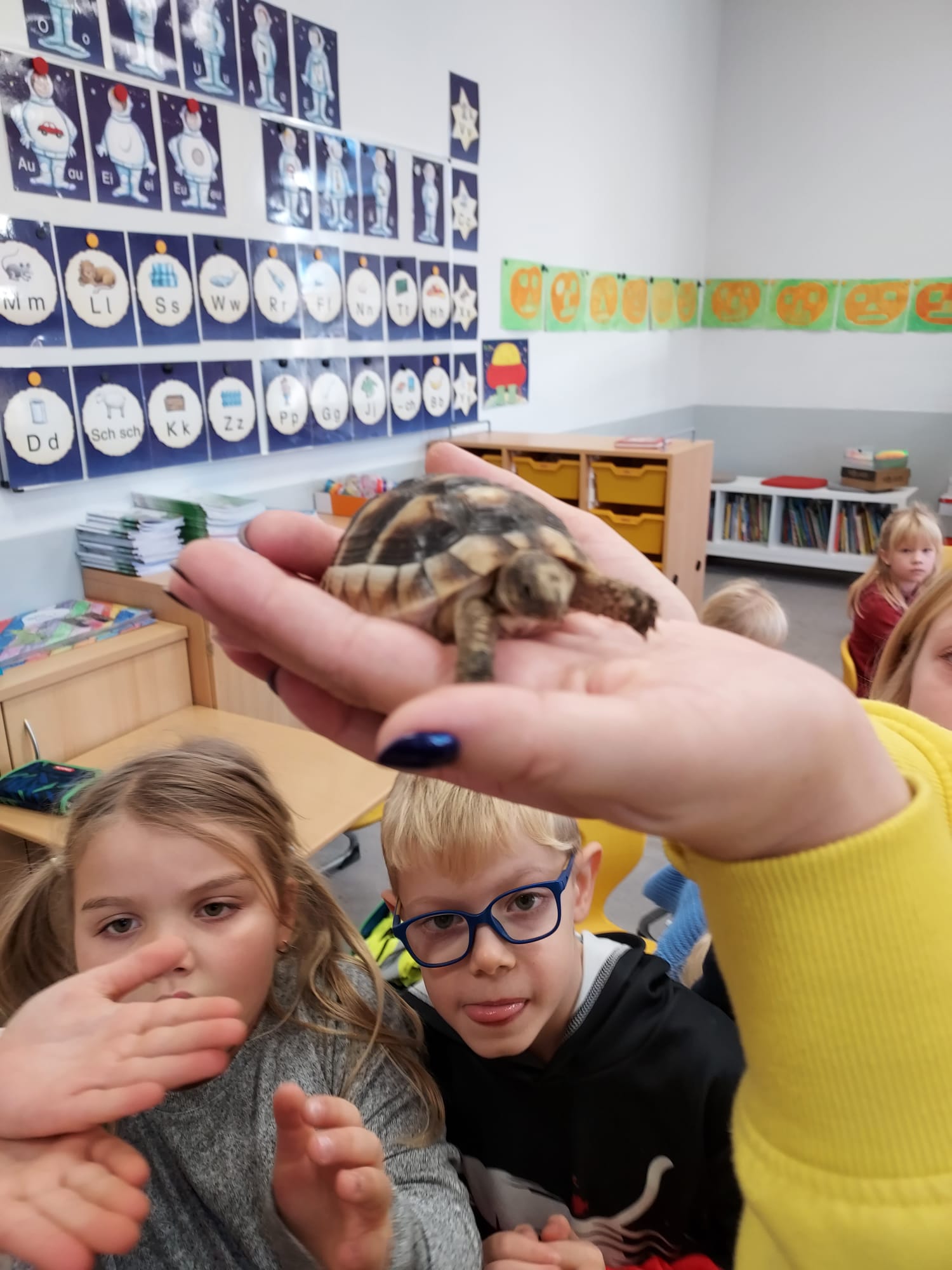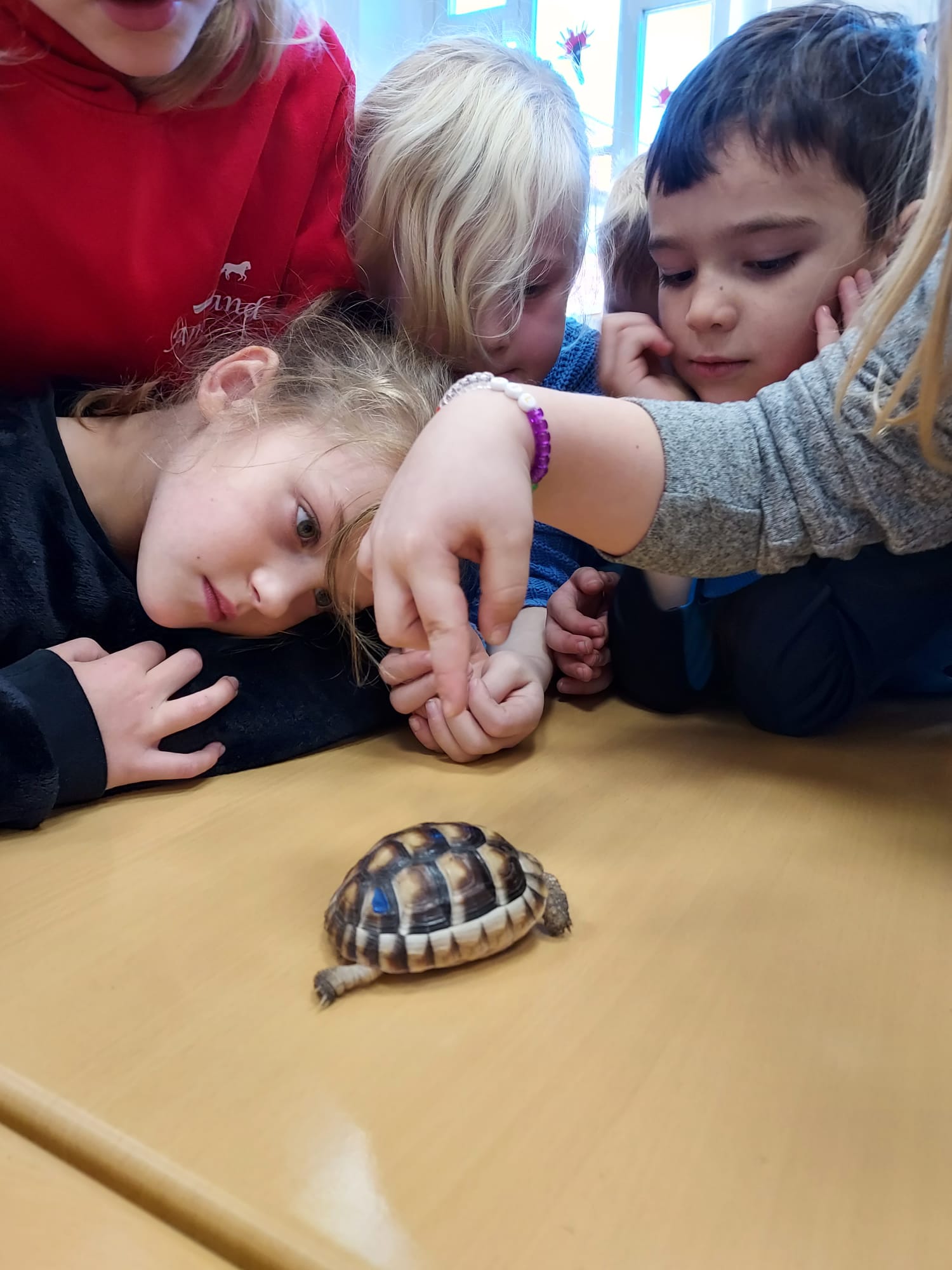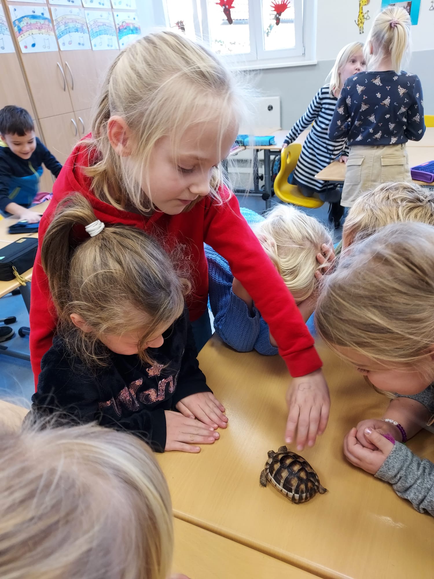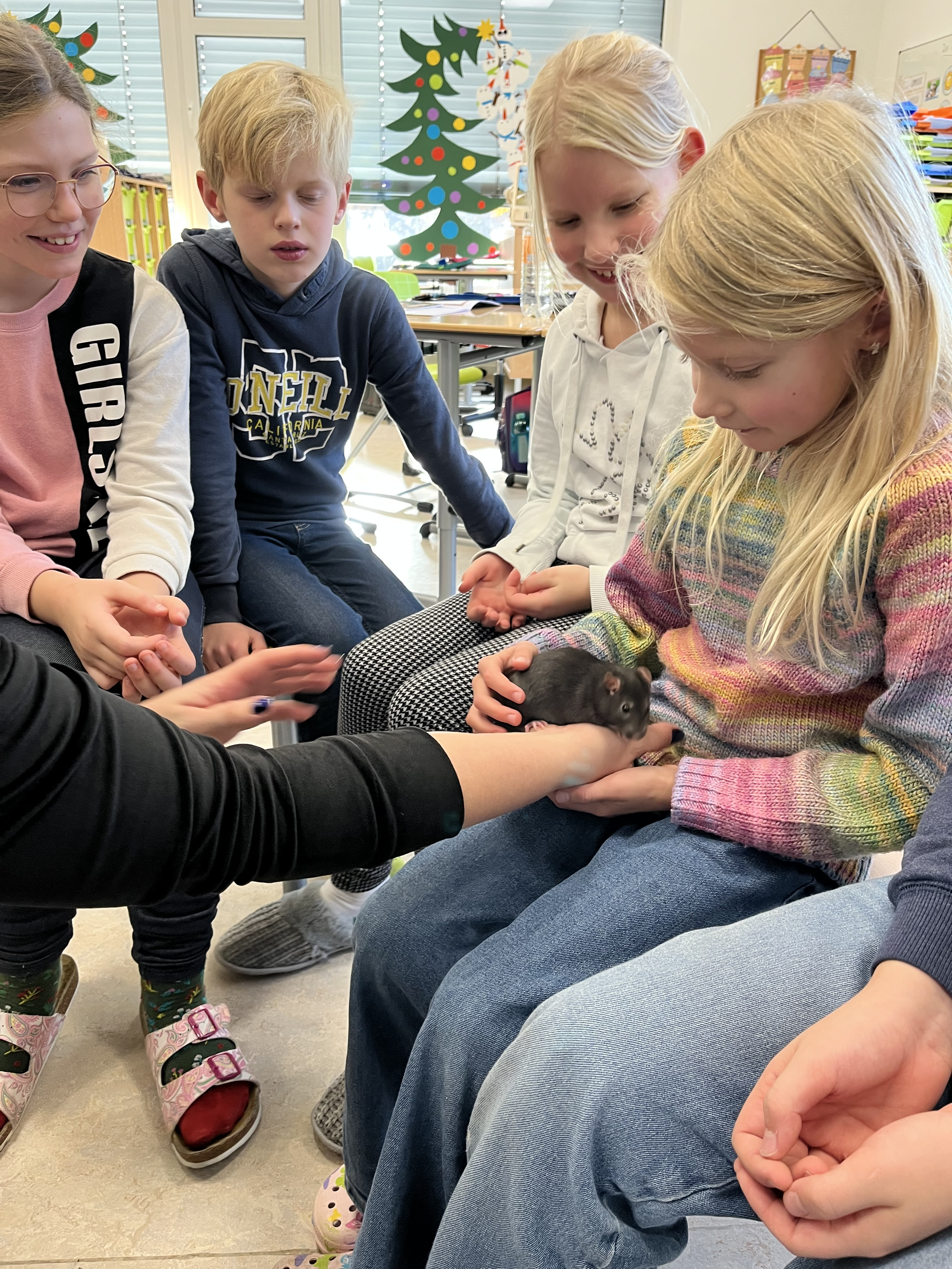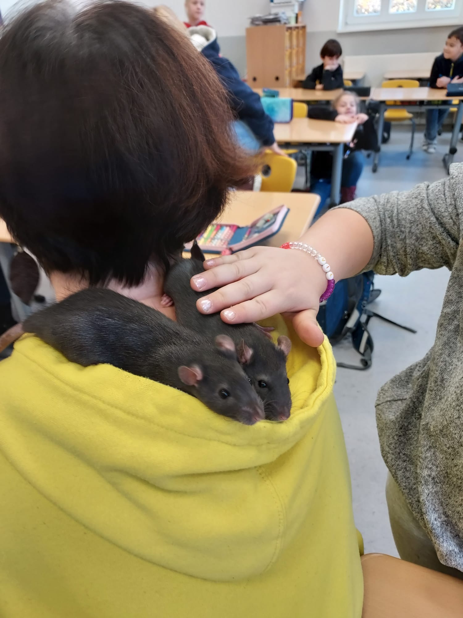 In der vergangenen Woche erlebte die Grundschule Wachtum eine besondere Bereicherung im Unterricht: Unsere Praktikantin Magdalena brachte ihre faszinierenden Haustiere mit, zwei lebhafte Hausratten und eine beeindruckende Landschildkröte.