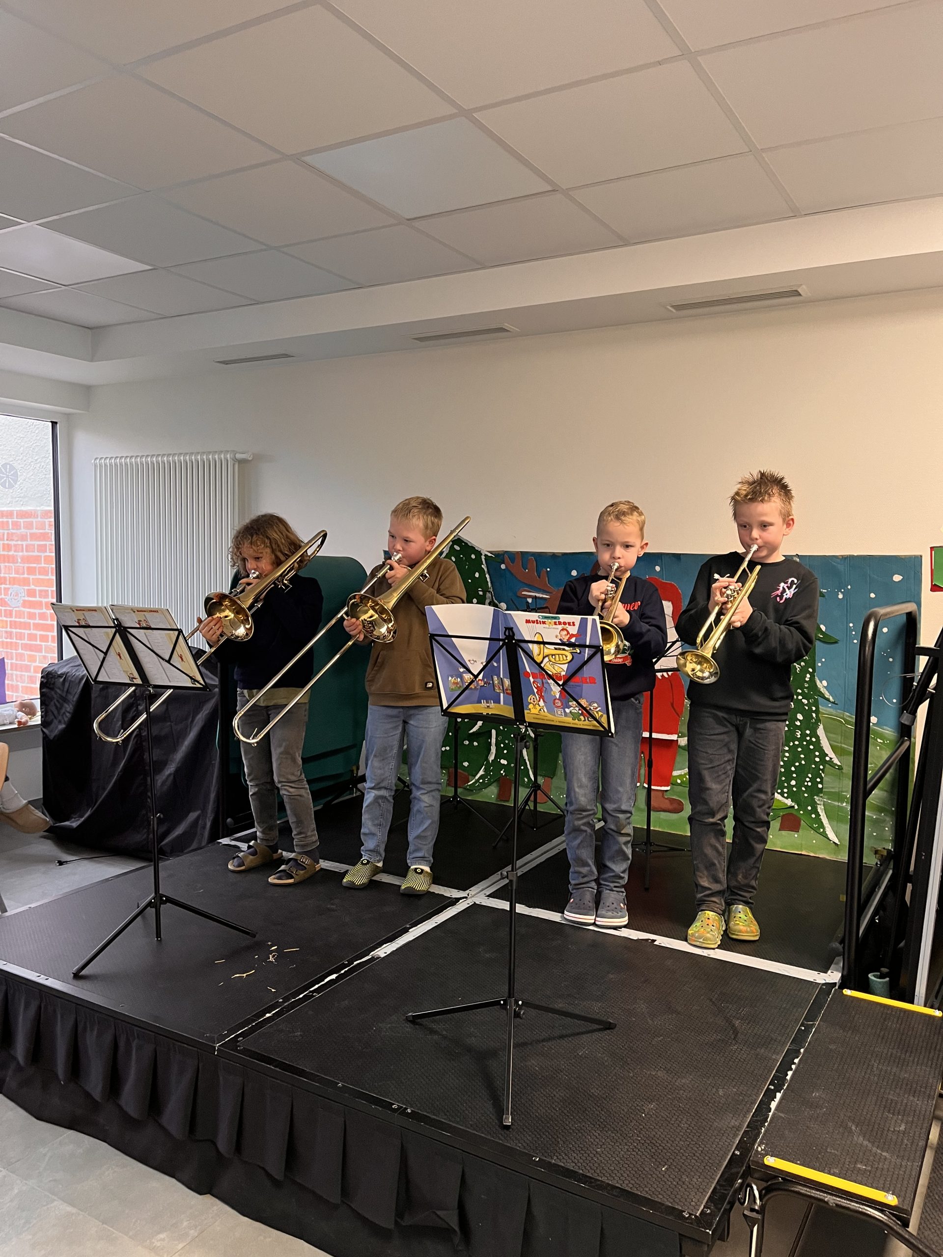 Den Start machte die Klasse 4 mit ihrem Theaterstück – mutig, konzentriert und richtig beeindruckend. Danach wurde es musikalisch: Erst die Holzbläser, dann die Blechbläser. Man konnte hören, wie viel Üben, Zusammenhalt und Stolz in jedem Ton steckte.