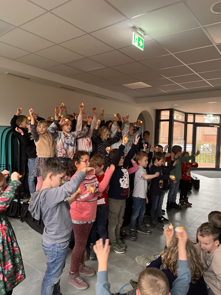 Ein ganz besonderer Gänsehautmoment war das Lied „Lichterkinder“ der Klassen 1 und 2: kleine Lichter, große Stimmung – und plötzlich wurde es ganz still, weil alle gespürt haben, wie besonders dieser Augenblick ist. Zum Abschluss haben wir gemeinsam „Feliz Navidad“ gesungen – fröhlich, warm und genau richtig, um die Feier rund zu machen.